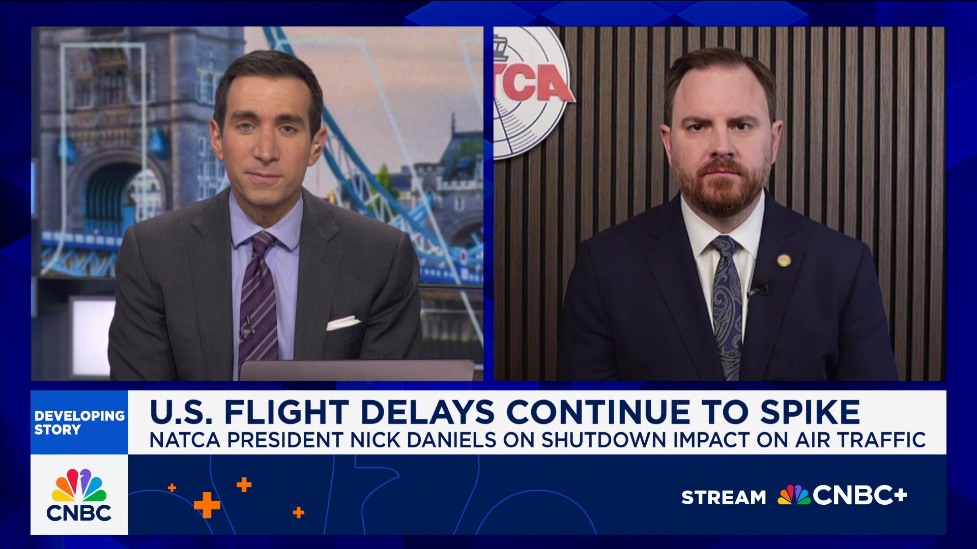 National Air Traffic Controllers Association President Nick Daniels told CNBC‘s “Squawk Box” that it could take “weeks to recover” from the impacts of the shutdown on air traffic controllers.