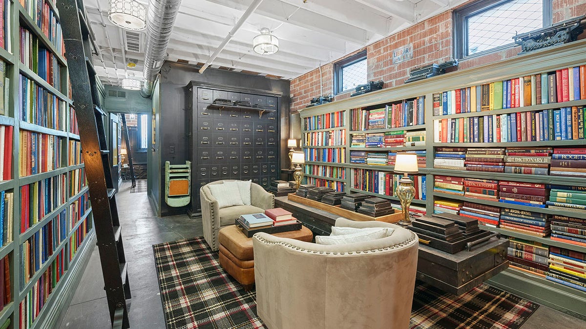 “One of the more notable features includes floor-to-ceiling bookshelves with library ladders and 7,000 plus hardcover books spanning every room,” the listing reads.