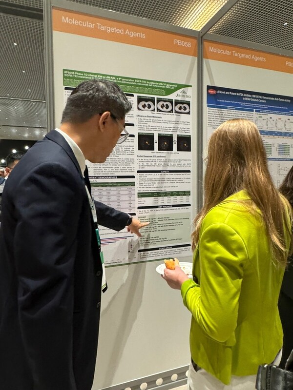 SEOUL, South Korea, Oct. 24, 2024 /PRNewswire/ — J INTS BIO, a pioneering biopharmaceutical company, has unveiled promising interim results from the Phase 1/2 clinical trial of its novel 4th-generation EGFR Tyrosine Kinase Inhibitor (TKI), JIN-A02, aimed at EGFR-mutated non-small cell lung cancer (NSCLC) patients who developed resistance and progressive diseases despite treatments. The data was presented at this year’s edition of ENA (EORTC-NCI-AACR) Symposium, held in Barcelona, Spain, from October 23-25, 2024, drawing significant attention from the global oncology community.