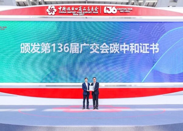 GUANGZHOU, China, Oct. 26, 2024 /PRNewswire/ — As China’s No.1 Fair, the Canton Fair is leading the drive in the exhibition industry to reduce carbon emissions and achieve the goal of hosting carbon-neutral tradeshows. At the “Green Space” event, Guangzhou Municipal Ecological Environment Bureau awarded a carbon neutrality certificate to the 136th Canton Fair.