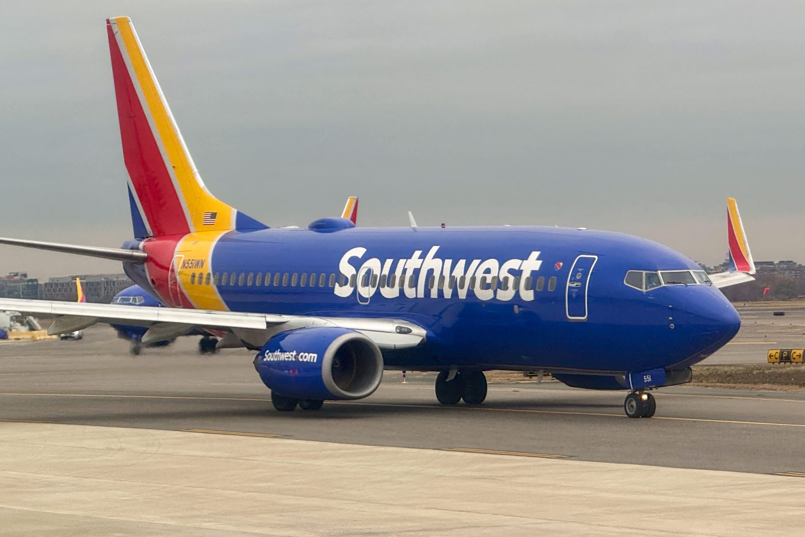 A Southwest Airlines Boeing 737 passenger plane taxis along the tarmac at the Ronald Reagan Washington National Airport (DCA) in Arlington, Virginia on December 13, 2024.