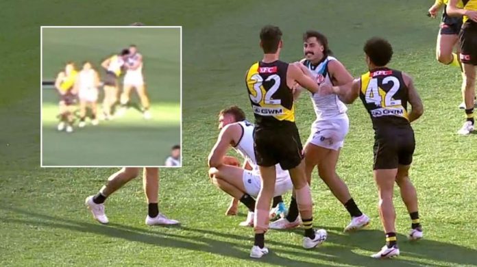 “They are 75-80m away from the football and he gives his opponent, Jordon Sweet, a shot to the guts, which ultimately cost them a goal and I would not be shocked if that was a small suspension as well,” Nick Dal Santo said on Fox Footy.